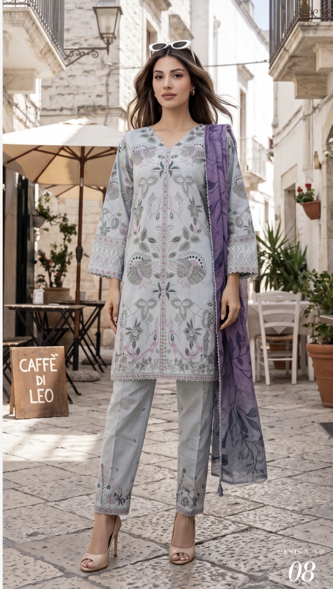 Light Grey Color Pakistani Lawn Suits – 08